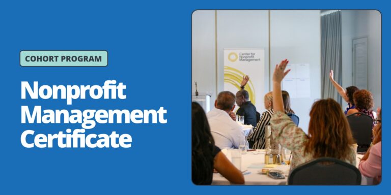 The Center for Nonprofit Management (CNM) offers an intensive 7-session Nonprofit Management Certificate Program held across a 3-month period. Designed as a cohort-based learning experience, this program builds leadership capacity nonprofit professionals need to navigate the complex challenges facing the sector, from unprecedented burnout and funding instability to increasing demands on workforce transformation post pandemic.